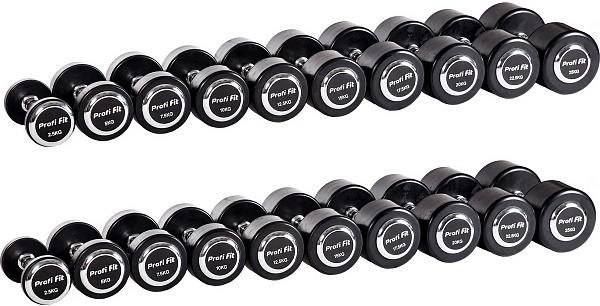 Гантельный ряд Profi-Fit Professional 2,5 кг - 25 кг (10 пар), шаг 2,5 кг